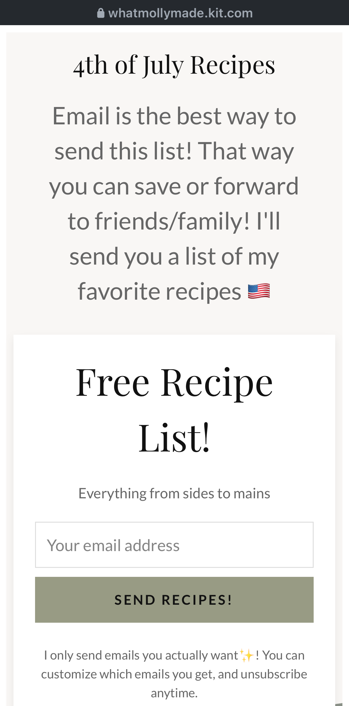Want more subscribers? Trade something helpful for their email. A free meal plan. A shopping list. You already have the content. Just package it up!